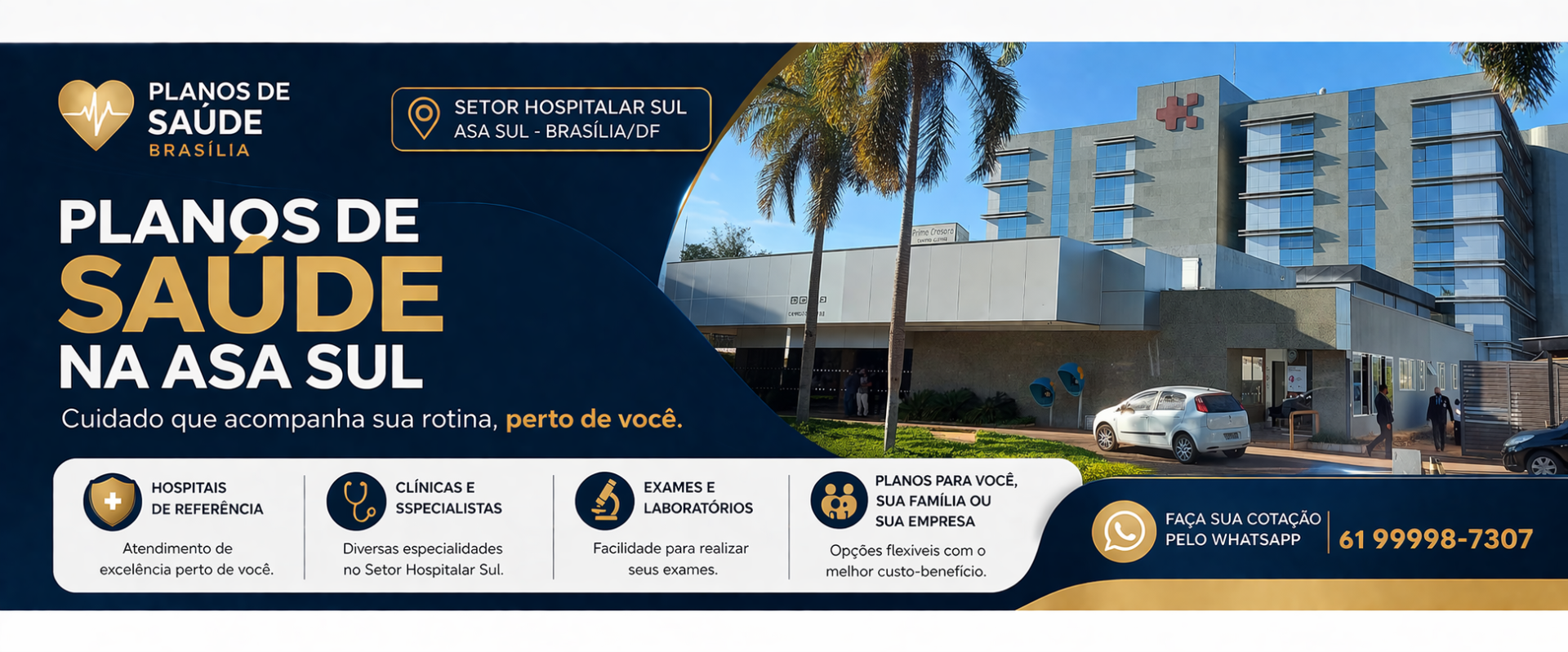 Compare planos de saúde na Asa Sul DF com foco em rede credenciada, hospitais próximos, clínicas médicas, laboratórios e atendimento prático para quem mora ou trabalha em Brasília.